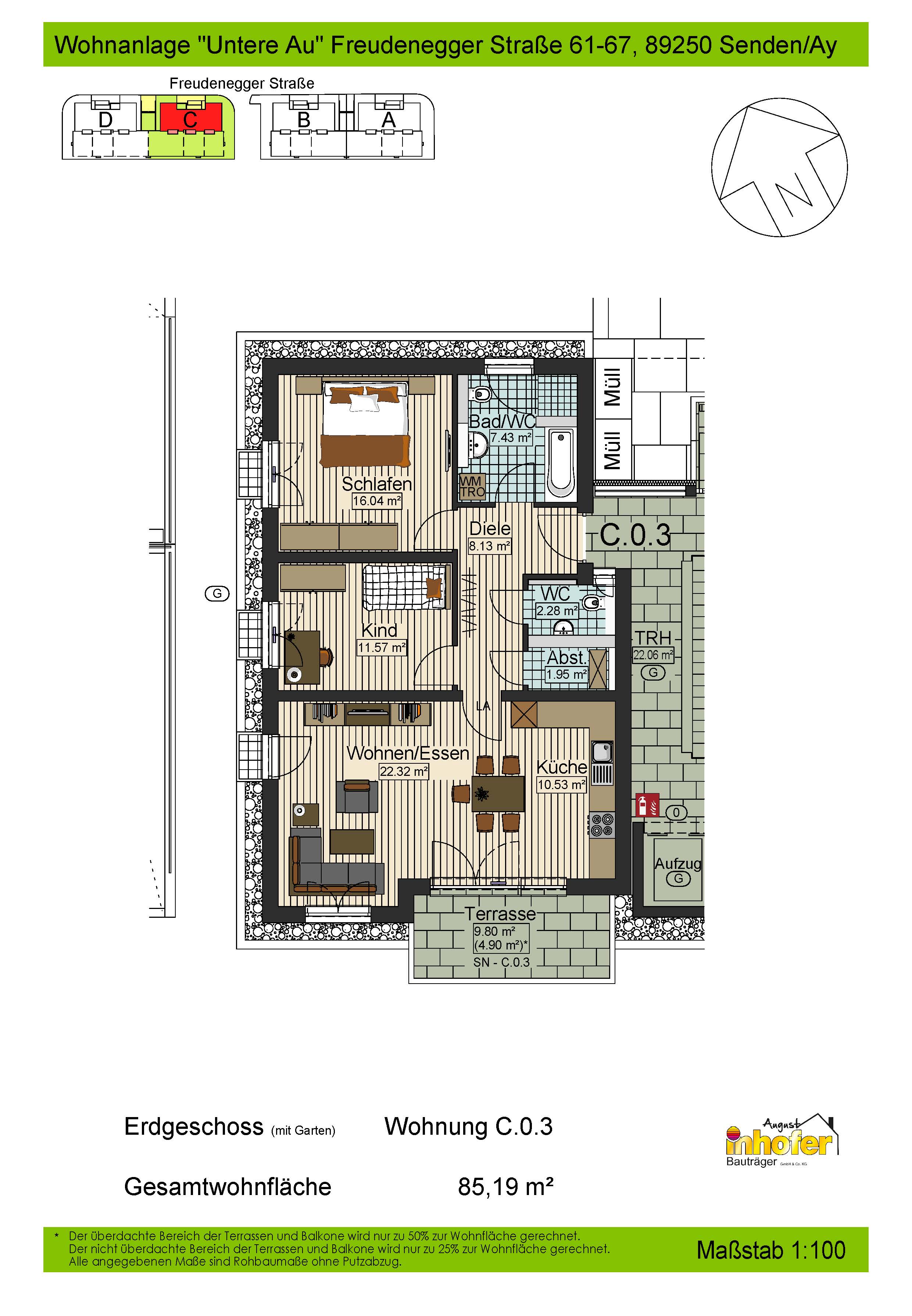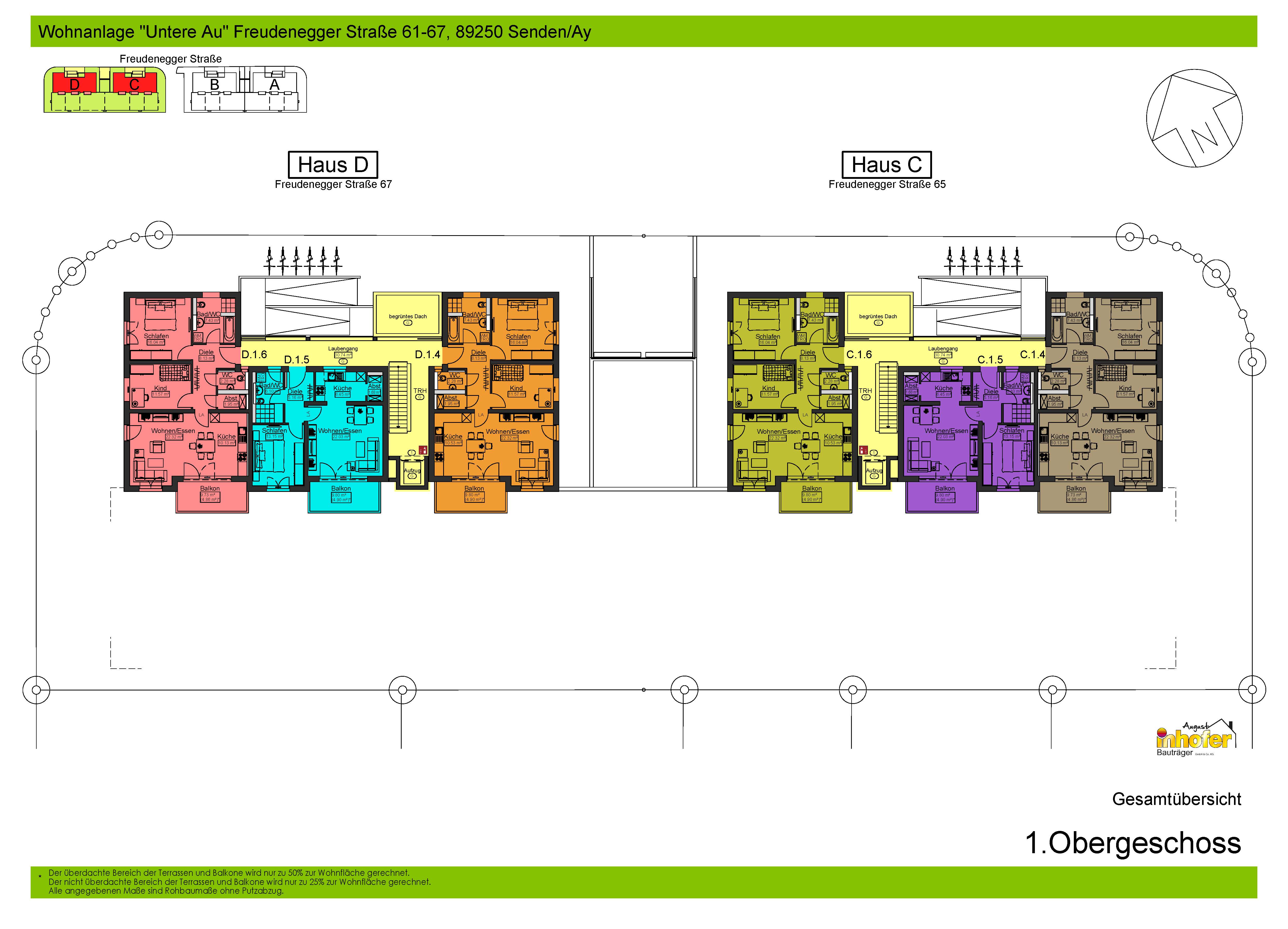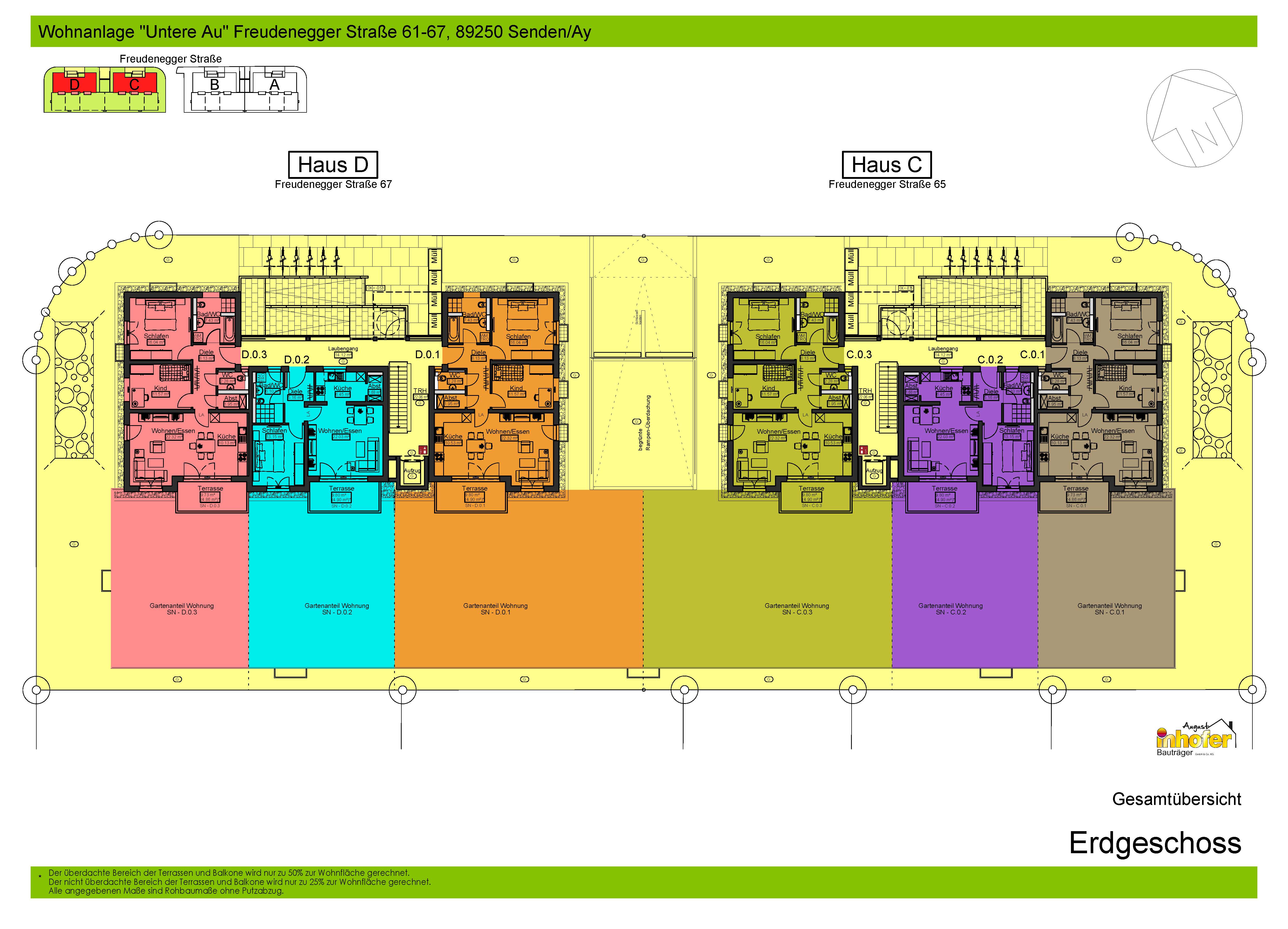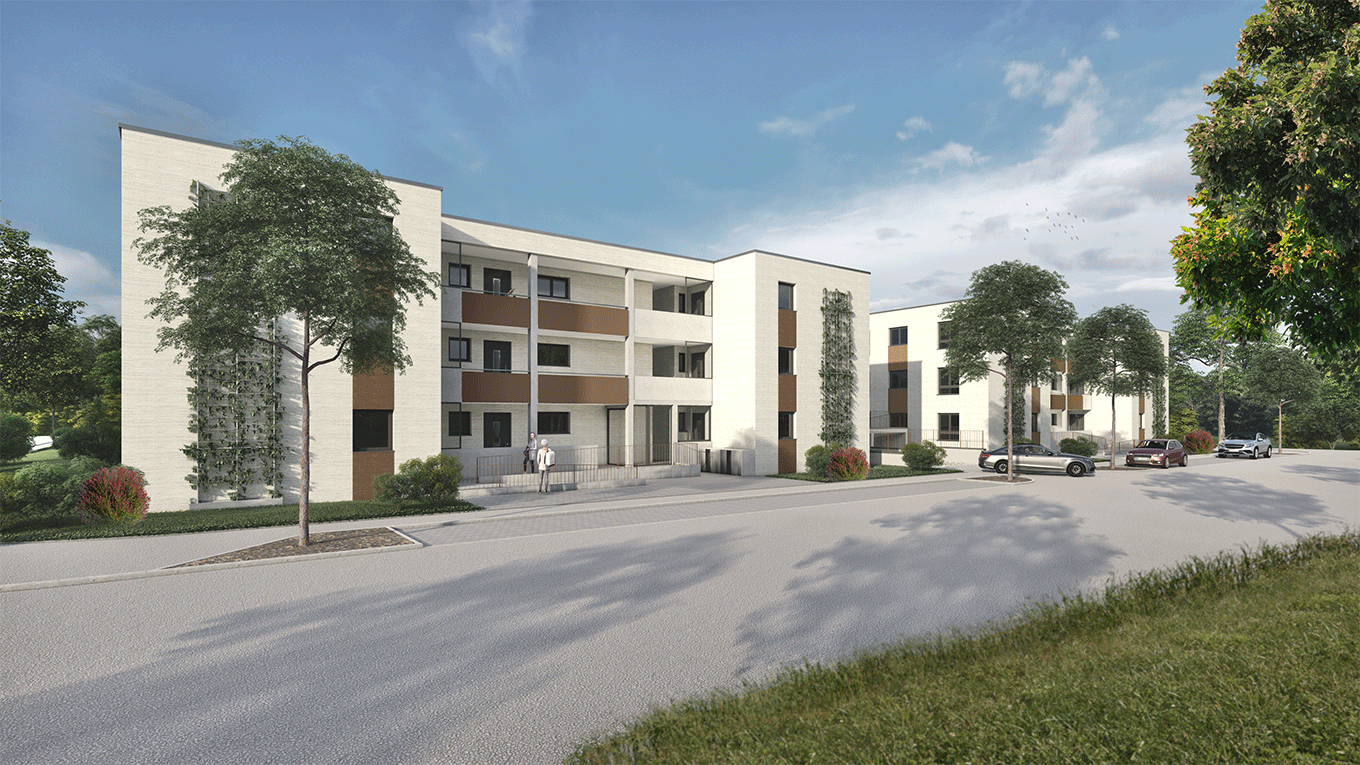 - 9 Wohnungen pro Hauseingang, als 2- und 3-Zimmer-Wohnungen •Wohnflächen zwischen 57m² und 85m²